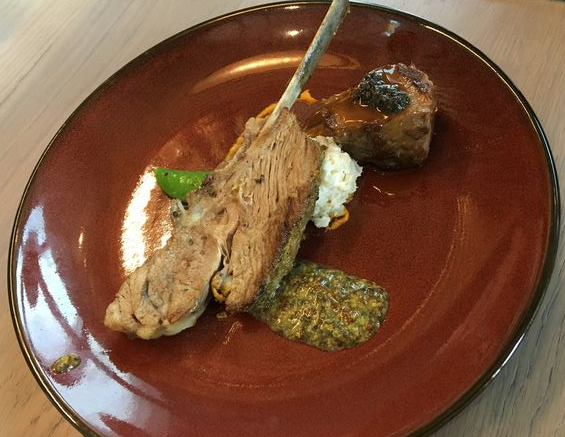 羊排配的醬也很不錯,裡面有加黃芥末醬的味道