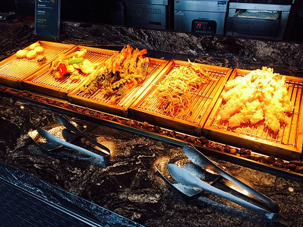 炸蟹餅、炸蔬菜、裹海苔的炸蝦、又是一個炸綜合蔬菜、炸蝦....
